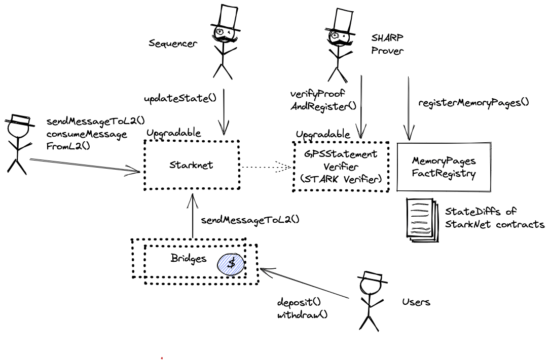 Permissioned to regularly update the state of the L2 on L1. Each state update must have been proven via the SHARP verifier and contains state diffs for data availability.