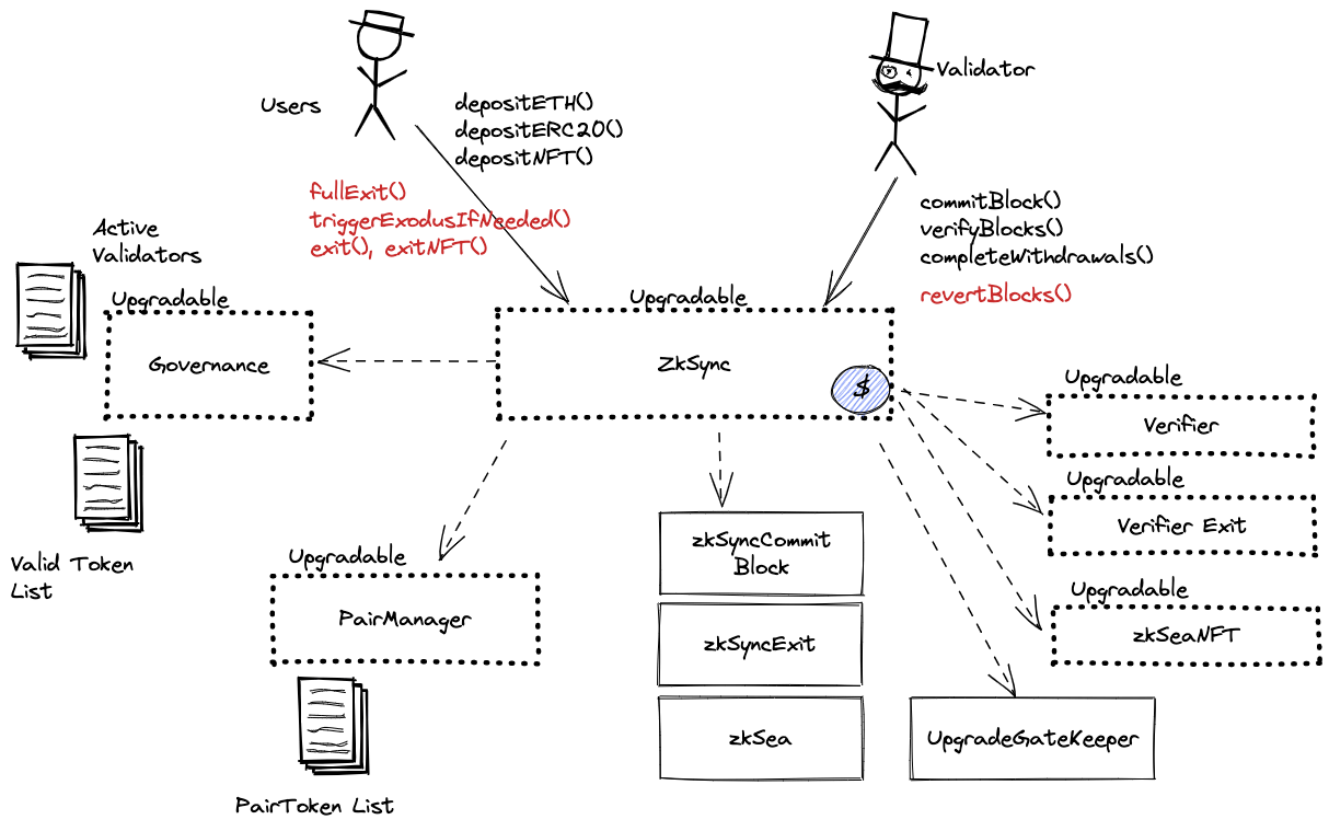 This actor is allowed to propose, revert and execute L2 blocks on L1. A list of active validators is kept inside Governance contract and can be updated by zkSpace Admin.